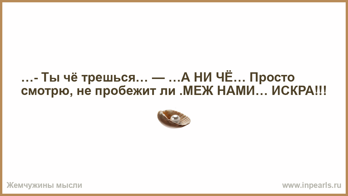 …- Ты чё трешься… — …А НИ ЧЁ… Просто смотрю, не пробежит ли .МЕЖ НАМИ… ИСКРА!!!