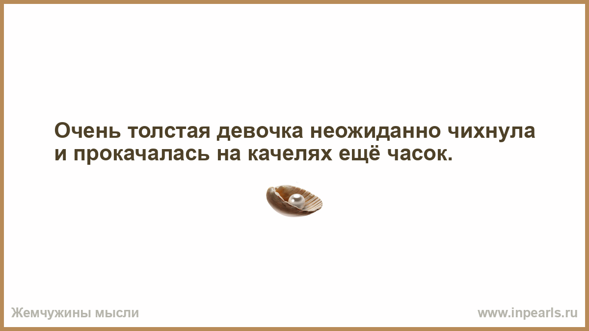 Очень толстая девочка неожиданно чихнула и прокачалась на качелях ещё часок.