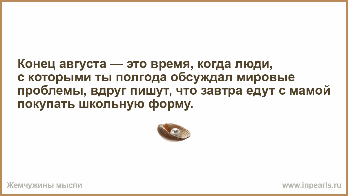Конец августа — это время, когда люди, с которыми ты полгода обсуждал мировые проблемы, вдруг пишут, что завтра едут с мамой покупать школьную форму.