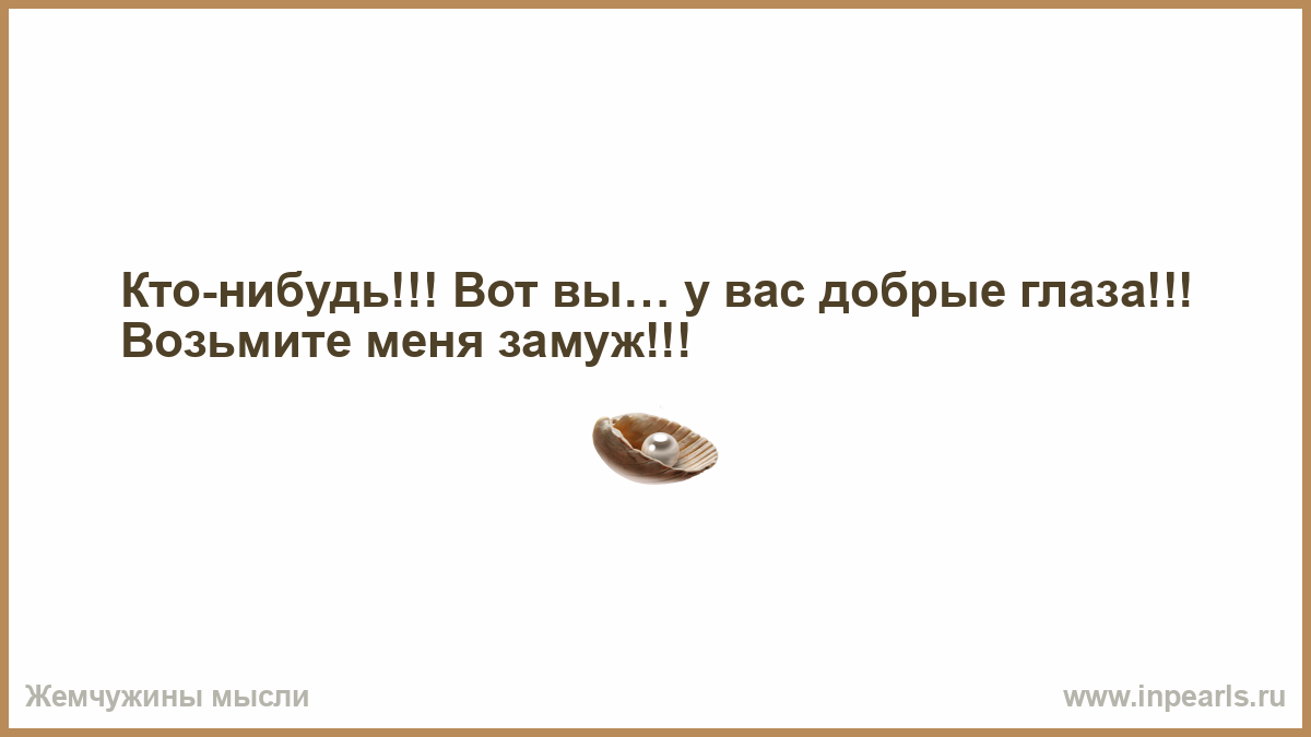 Кто-нибудь!!! Вот вы… у вас добрые глаза!!! Возьмите меня замуж!!!