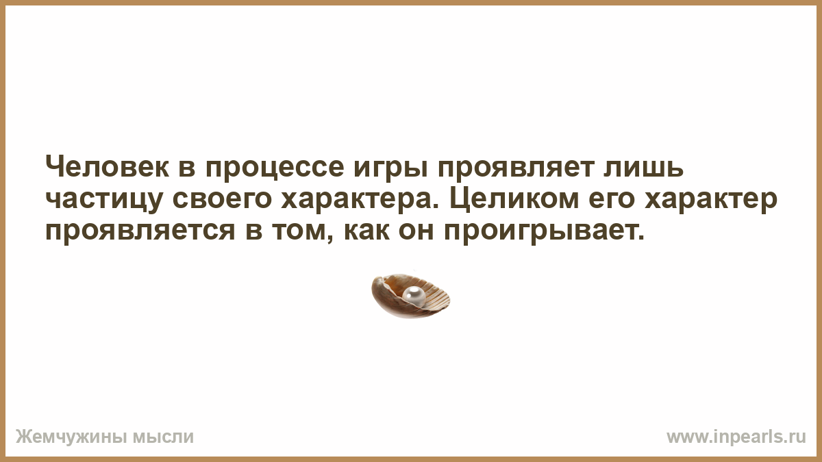 Человек в процессе игры проявляет лишь частицу своего характера. Целиком его характер проявляется в том, как он проигрывает.