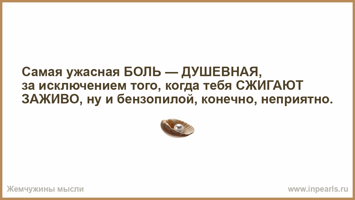 Самая ужасная БОЛЬ — ДУШЕВНАЯ, за исключением того, когда тебя СЖИГАЮТ ЗАЖИВО, ну и бензопилой, конечно, неприятно.
