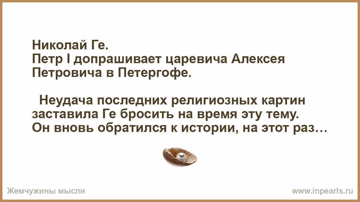 Неудача последних религиозных картин заставила Ге бросить на время эту тему. Он вновь обратился к истории, на этот раз русской, родной и близкой его душе.