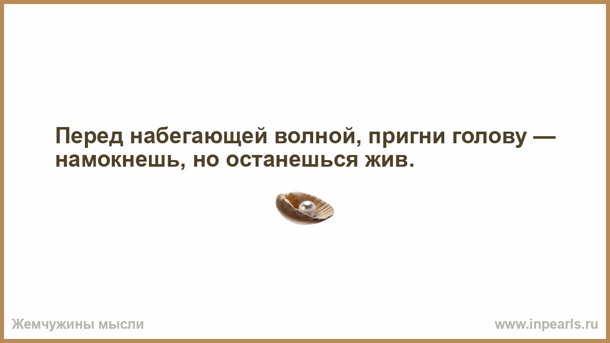 Перед набегающей волной, пригни голову — намокнешь, но останешься жив.