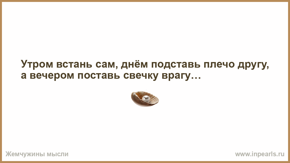 Утром встань сам, днём подставь плечо другу, а вечером поставь свечку врагу…