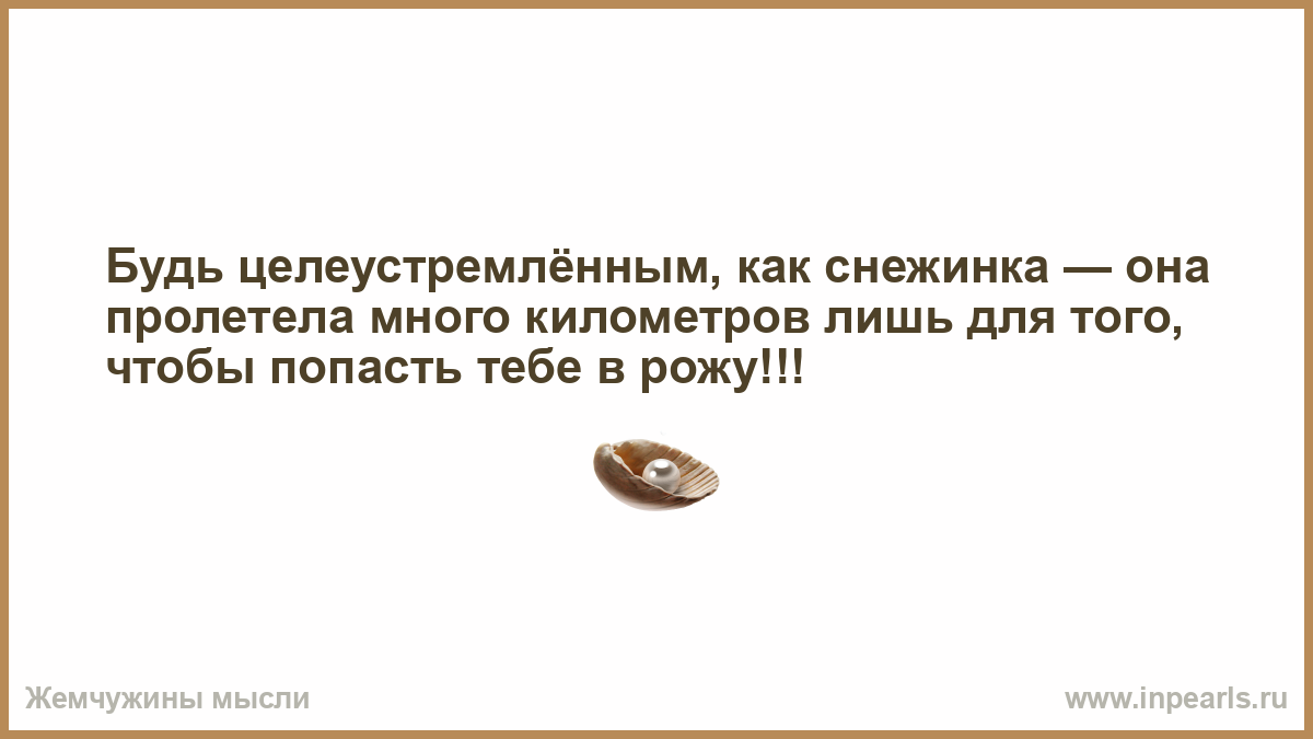 Будь целеустремлённым, как снежинка — она пролетела много километров лишь для того, чтобы попасть тебе в рожу!!!