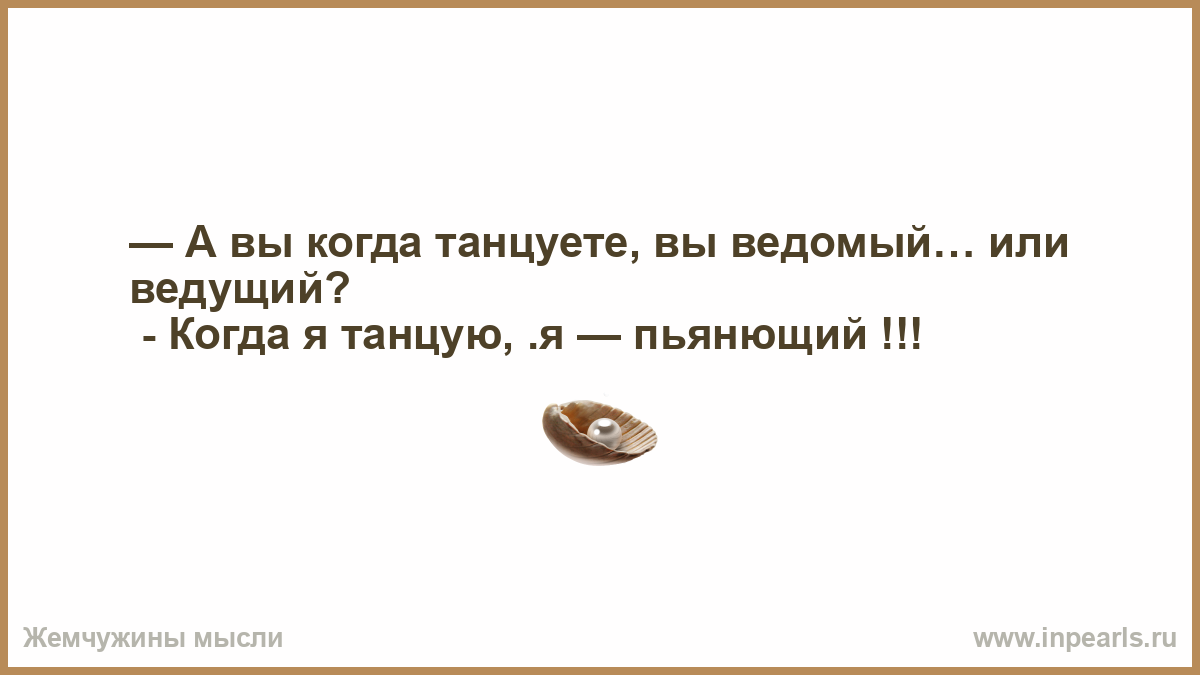 — А вы когда танцуете, вы ведомый… или ведущий? - Когда я танцую, .я — пьянющий !!!
