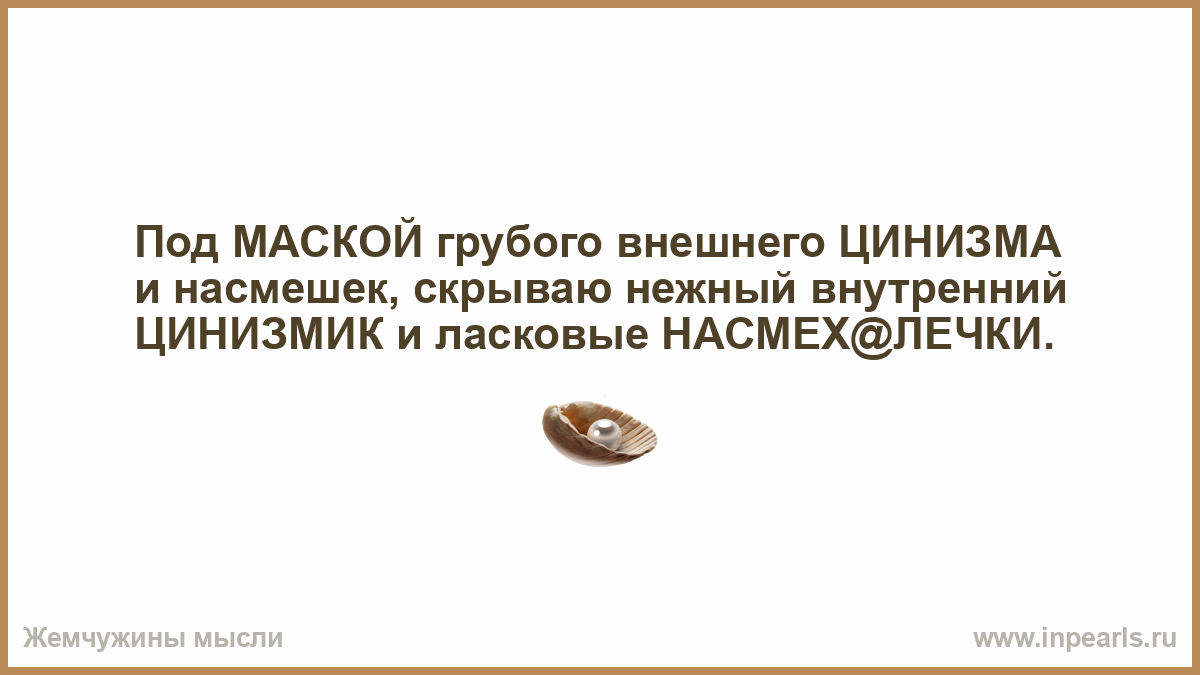Под МАСКОЙ грубого внешнего ЦИНИЗМА и насмешек, скрываю нежный внутренний ЦИНИЗМИК и ласковые НАСМЕХ@ЛЕЧКИ.