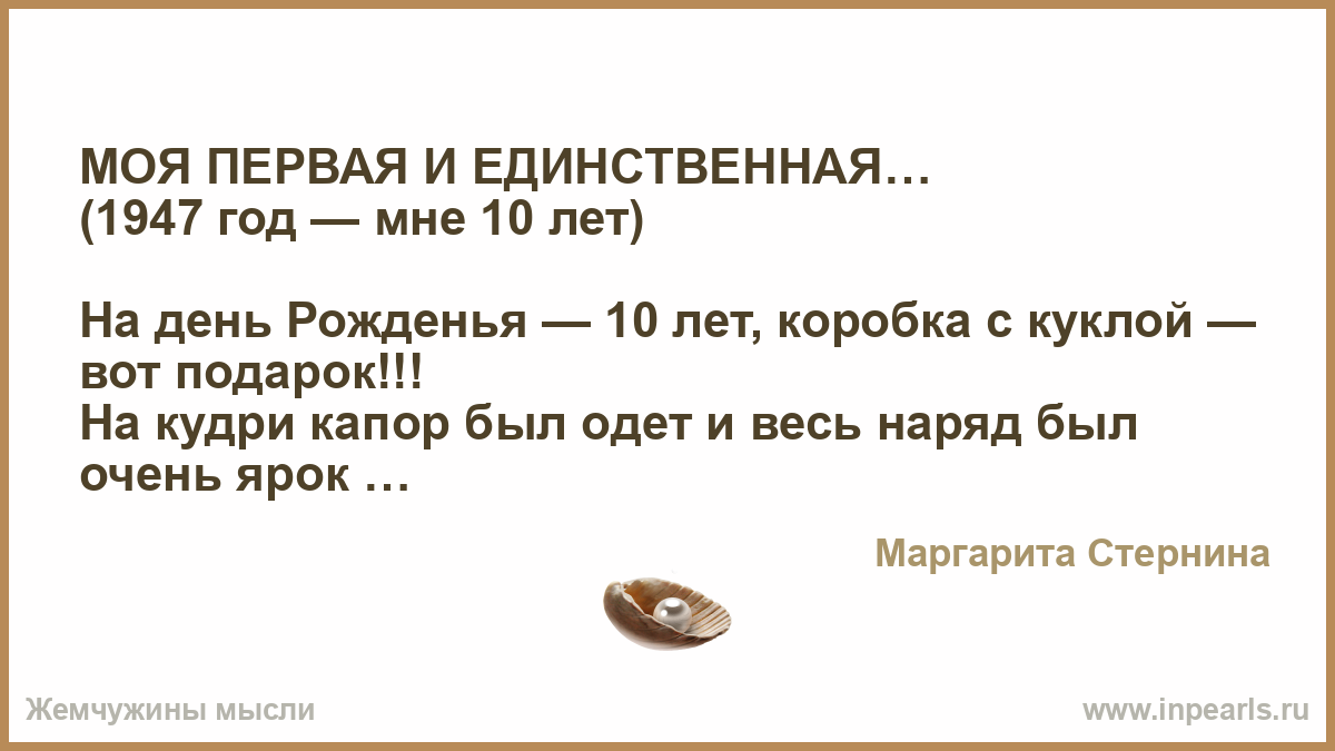 * В 1953 году подарила куклу двоюродной сестрёнке, она осталась