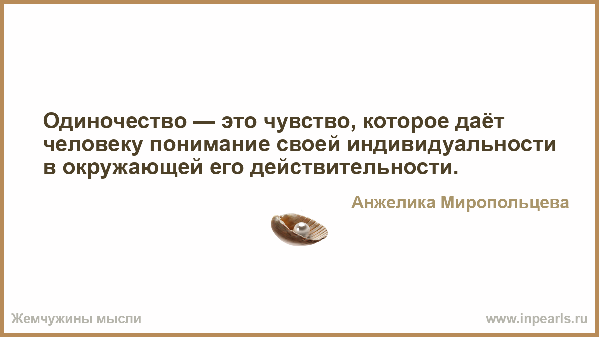Одиночество — это чувство, которое дает человеку понимание своей индивидуальности в окружающей его действительности.