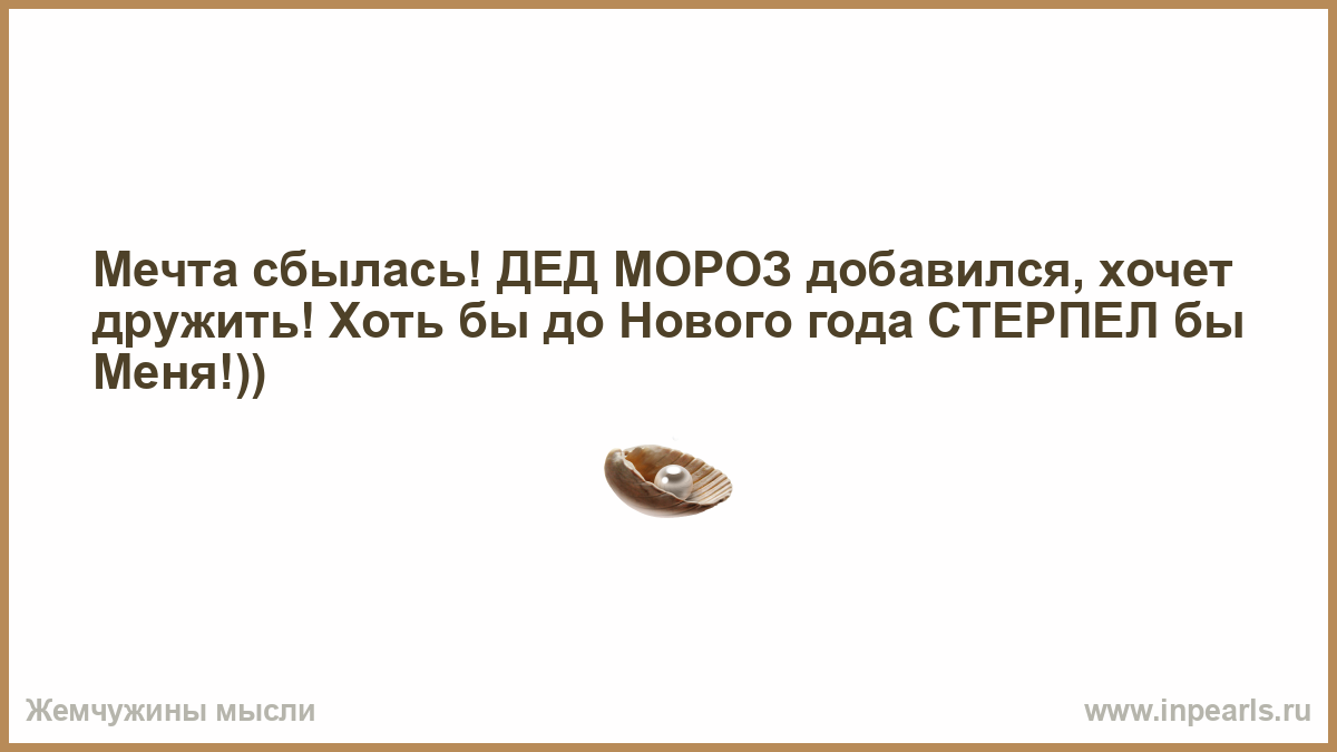 Мечта сбылась! ДЕД МОРОЗ добавился, хочет дружить! Хоть бы до Нового года СТЕРПЕЛ бы Меня!))