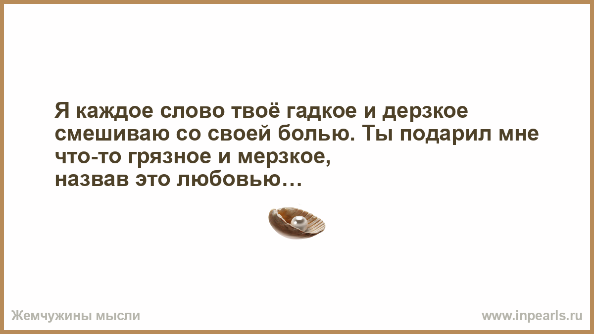 Я каждое слово твоё гадкое и дерзкое смешиваю со своей болью. Ты подарил мне что-то грязное и мерзкое, назвав это любовью…