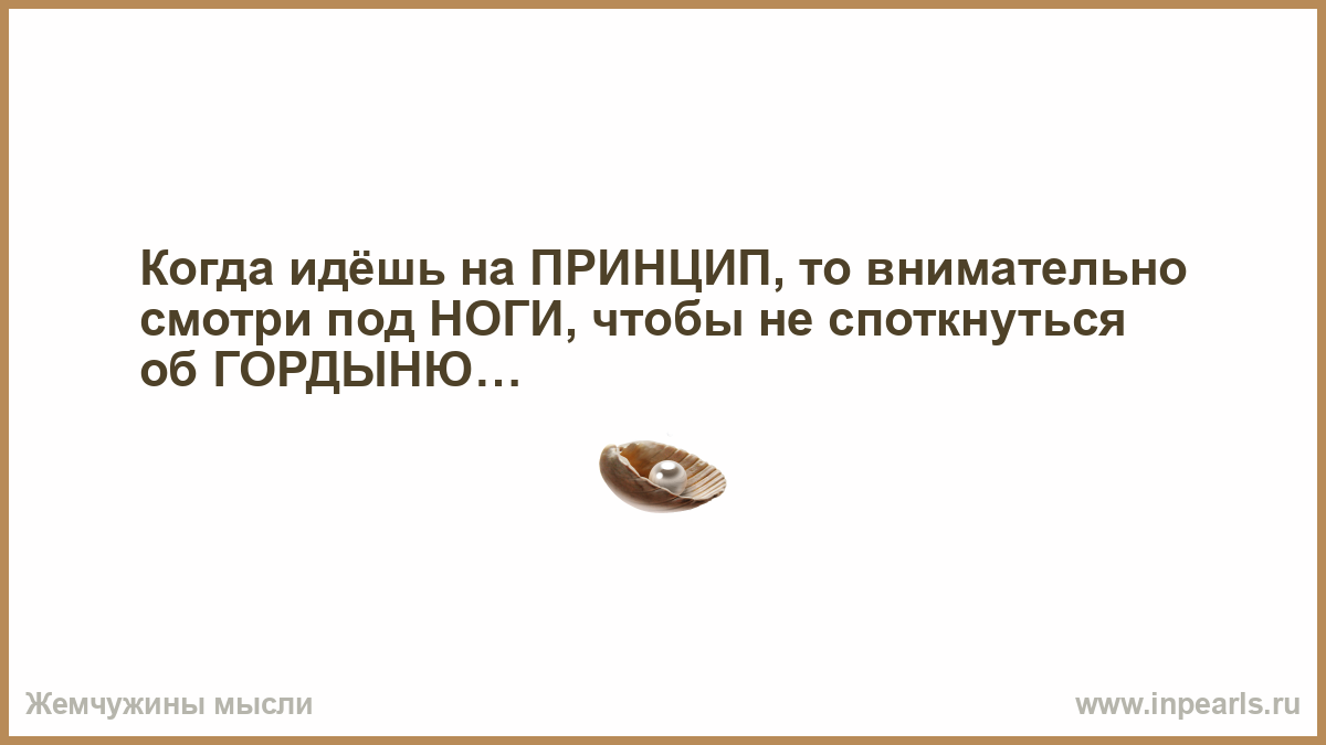 Когда идёшь на ПРИНЦИП, то внимательно смотри под НОГИ, чтобы не споткнуться об ГОРДЫНЮ…