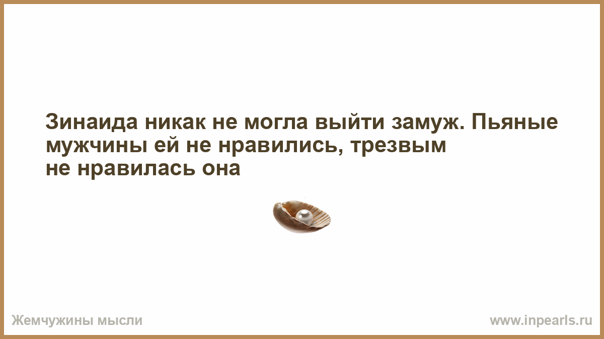 Зинаида никак не могла выйти замуж. Пьяные мужчины ей не нравились, трезвым не нравилась она