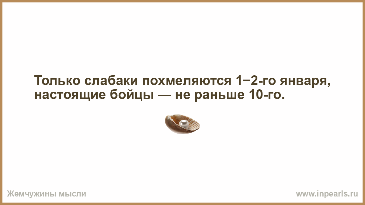 Только слабаки похмеляются 1−2-го января, настоящие бойцы — не раньше 10-го.