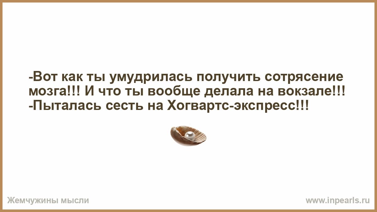 -Вот как ты умудрилась получить сотрясение мозга!!! И что ты вообще делала на вокзале!!! -Пыталась сесть на Хогвартс-экспресс!!!