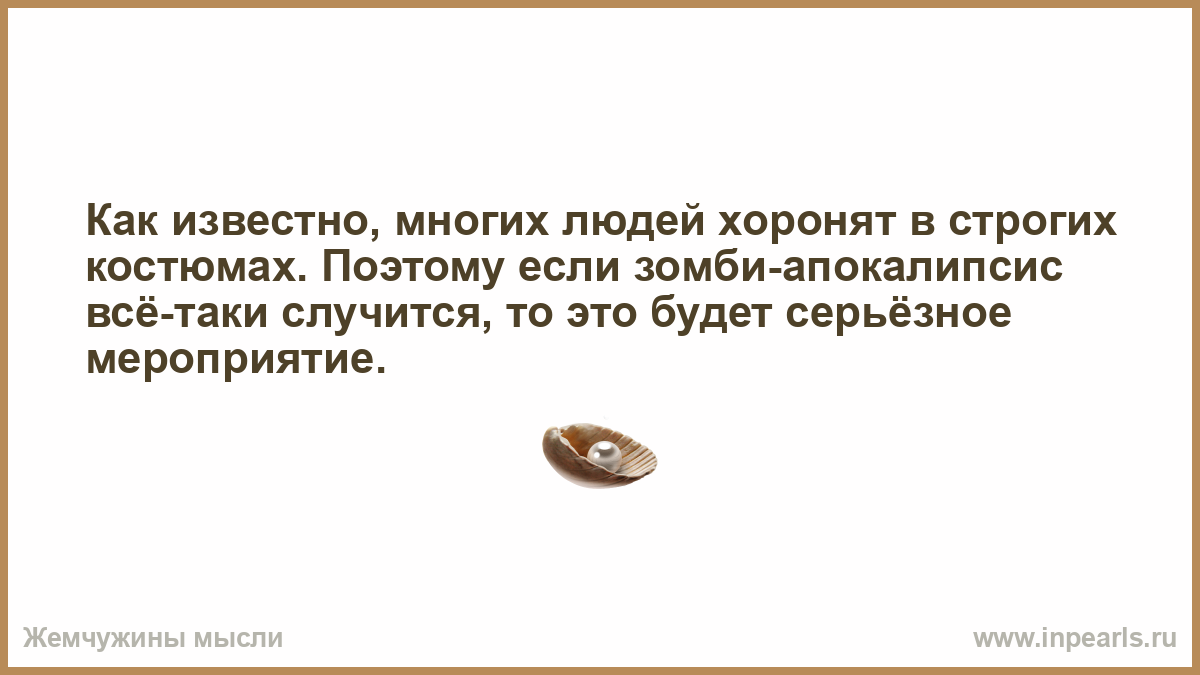Как известно, многих людей хоронят в строгих костюмах. Поэтому если зомби-апокалипсис всё-таки случится, то это будет серьёзное мероприятие.