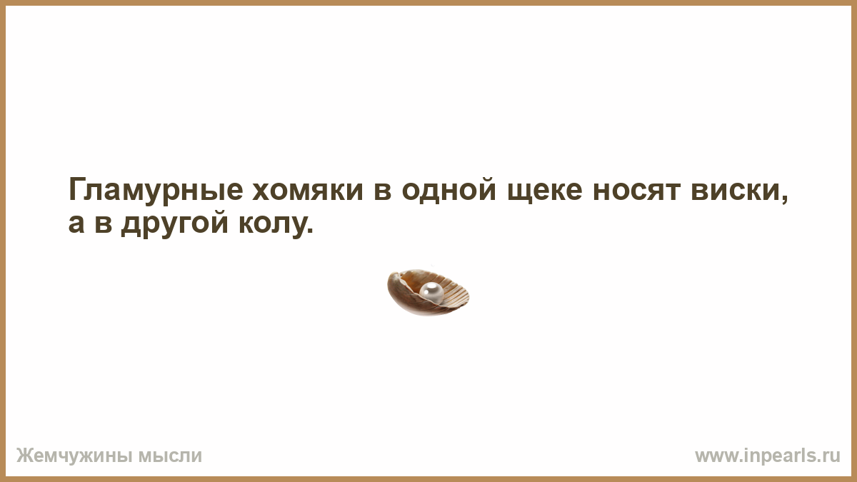 Гламурные хомяки в одной щеке носят виски, а в другой колу.
