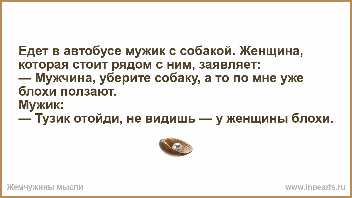 — Тузик отойди, не видишь — у женщины блохи.