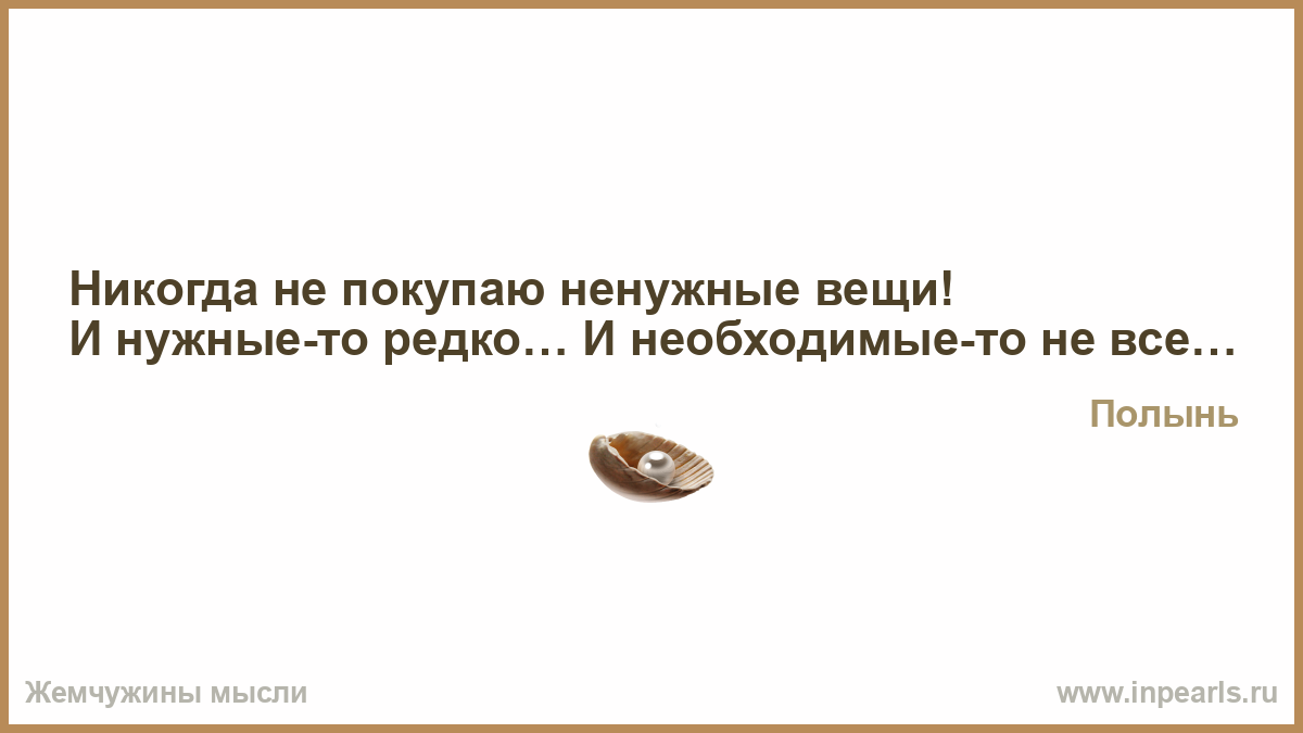 Никогда не покупаю ненужные вещи! И нужные-то редко… И необходимые-то не все…