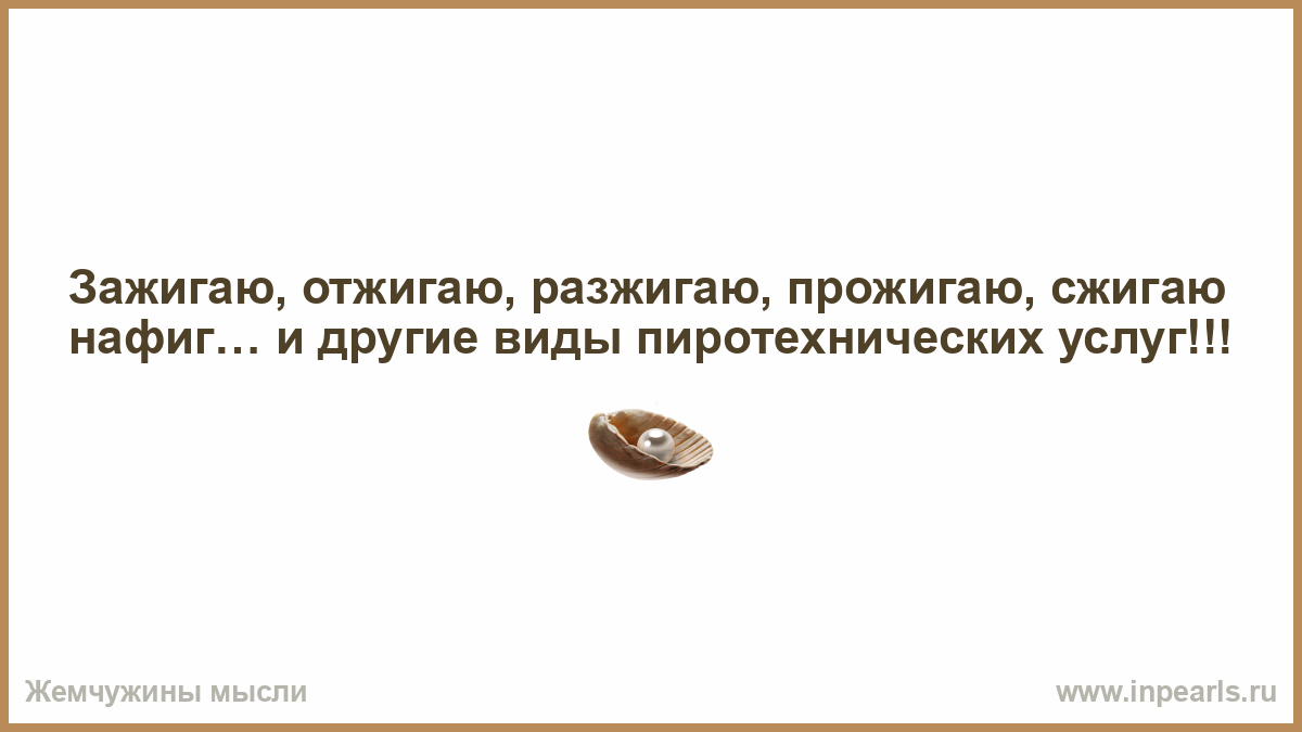 Зажигаю, отжигаю, разжигаю, прожигаю, сжигаю нафиг… и другие виды пиротехнических услуг!!!