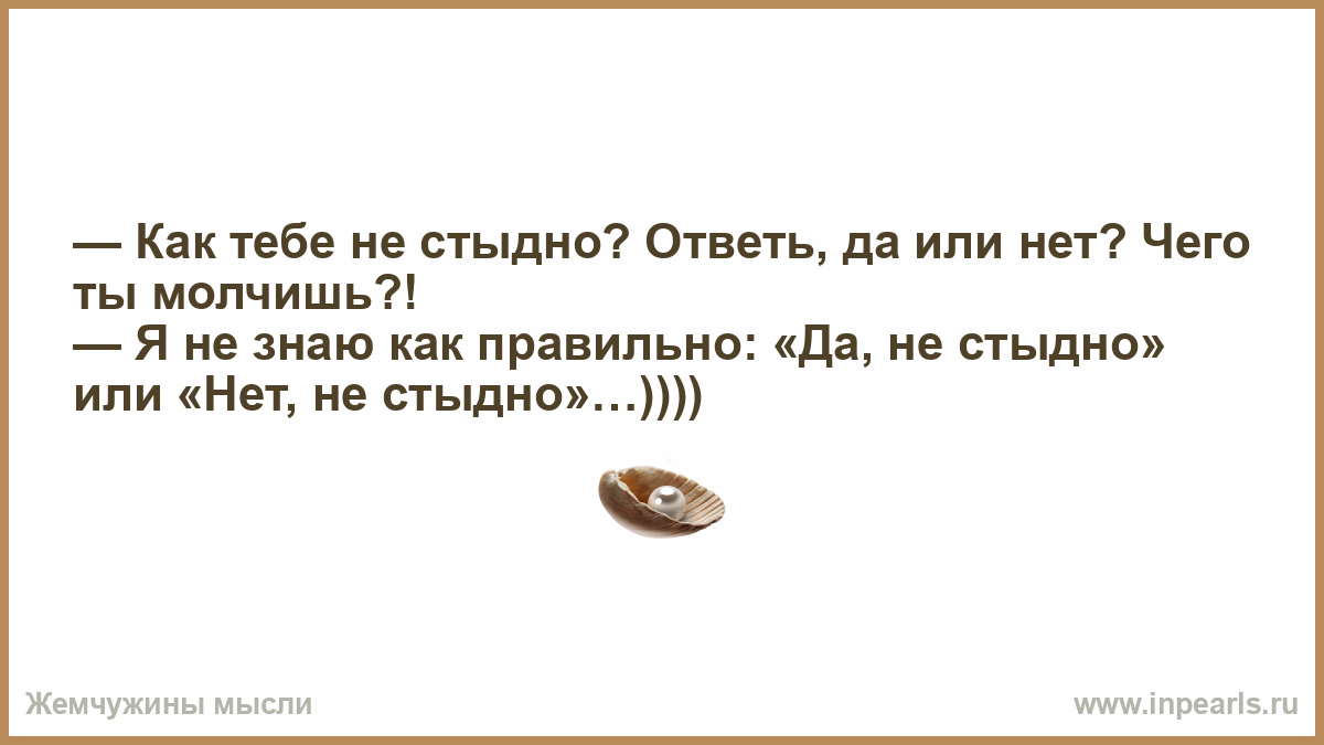 — Как тебе не стыдно? Ответь, да или нет? Чего ты молчишь?! — Я не знаю как правильно: «Да, не стыдно» или «Нет, не стыдно»…))))