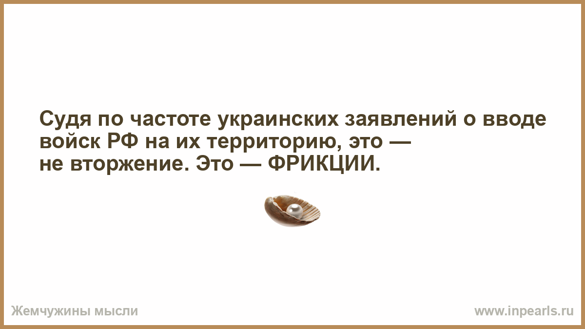 Судя по частоте украинских заявлений о вводе войск РФ на их территорию, это — не вторжение. Это — ФРИКЦИИ.