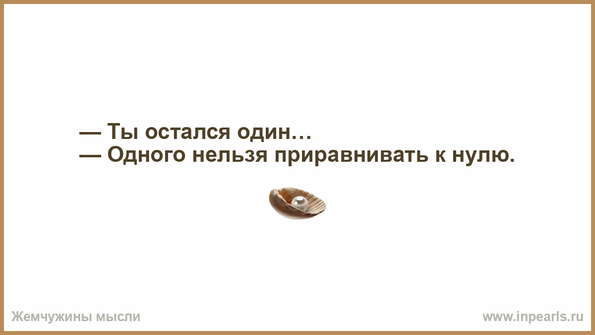 — Ты остался один… — Одного нельзя приравнивать к нулю.