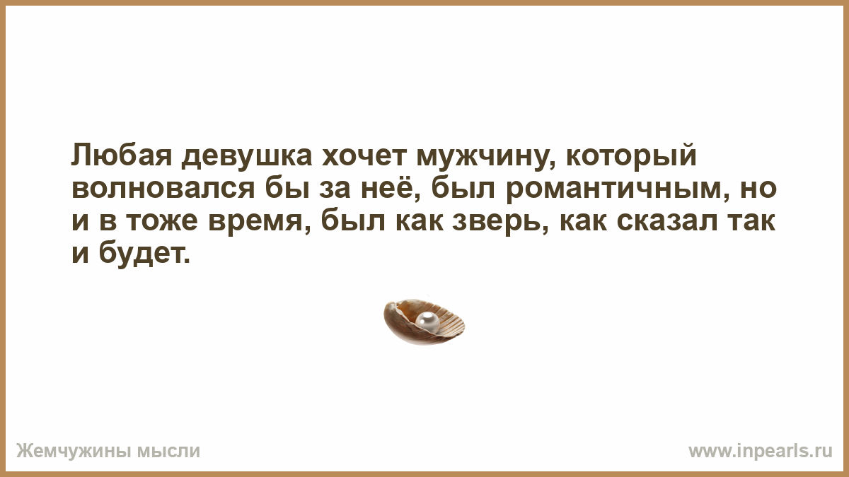 Любая девушка хочет мужчину, который волновался бы за неё, был романтичным, но и в тоже время, был как зверь, как сказал так и будет.