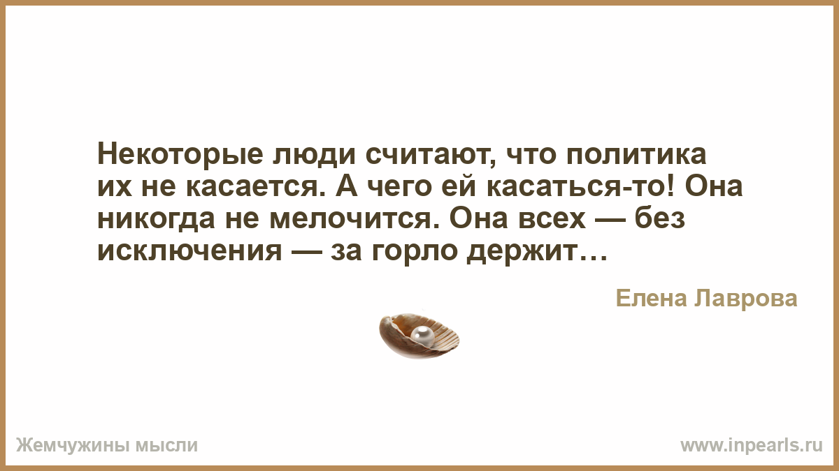 Некоторые люди считают, что политика их не касается. А чего ей касаться-то! Она никогда не мелочится. Она всех — без исключения — за горло держит…