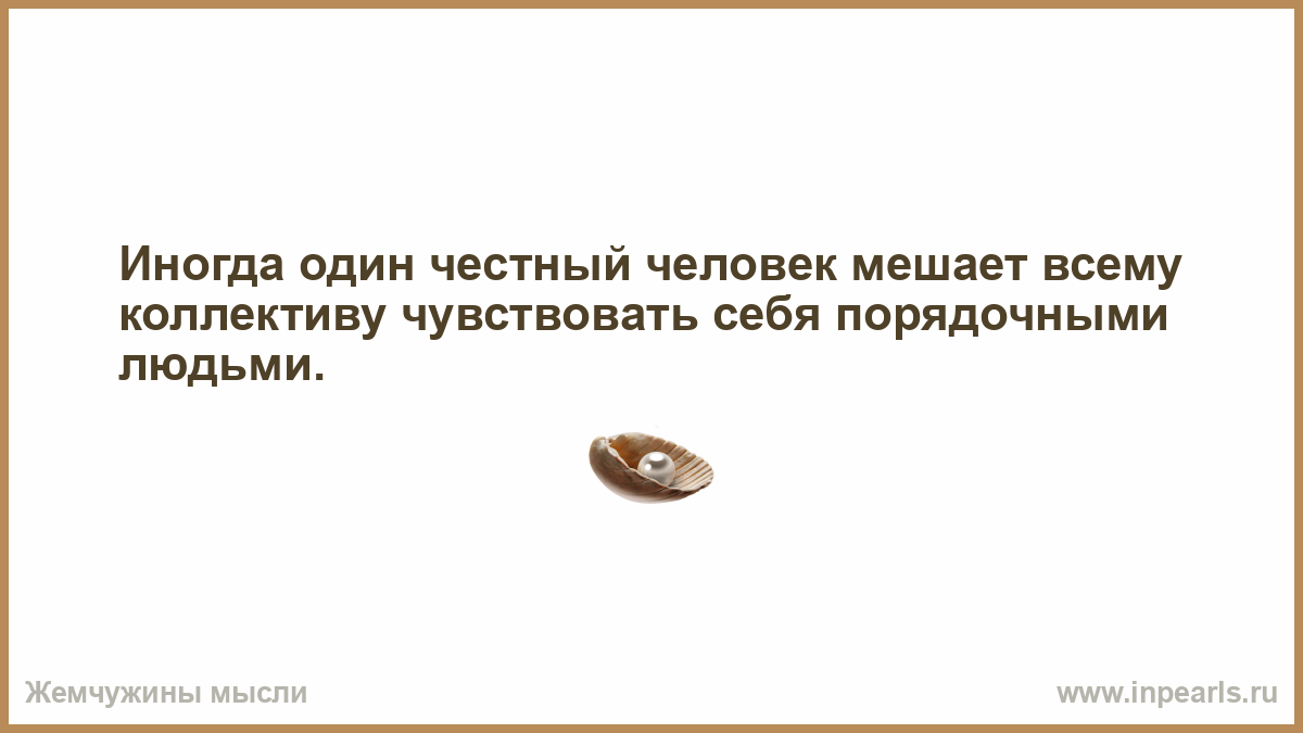 Иногда один честный человек мешает всему коллективу чувствовать себя порядочными людьми.