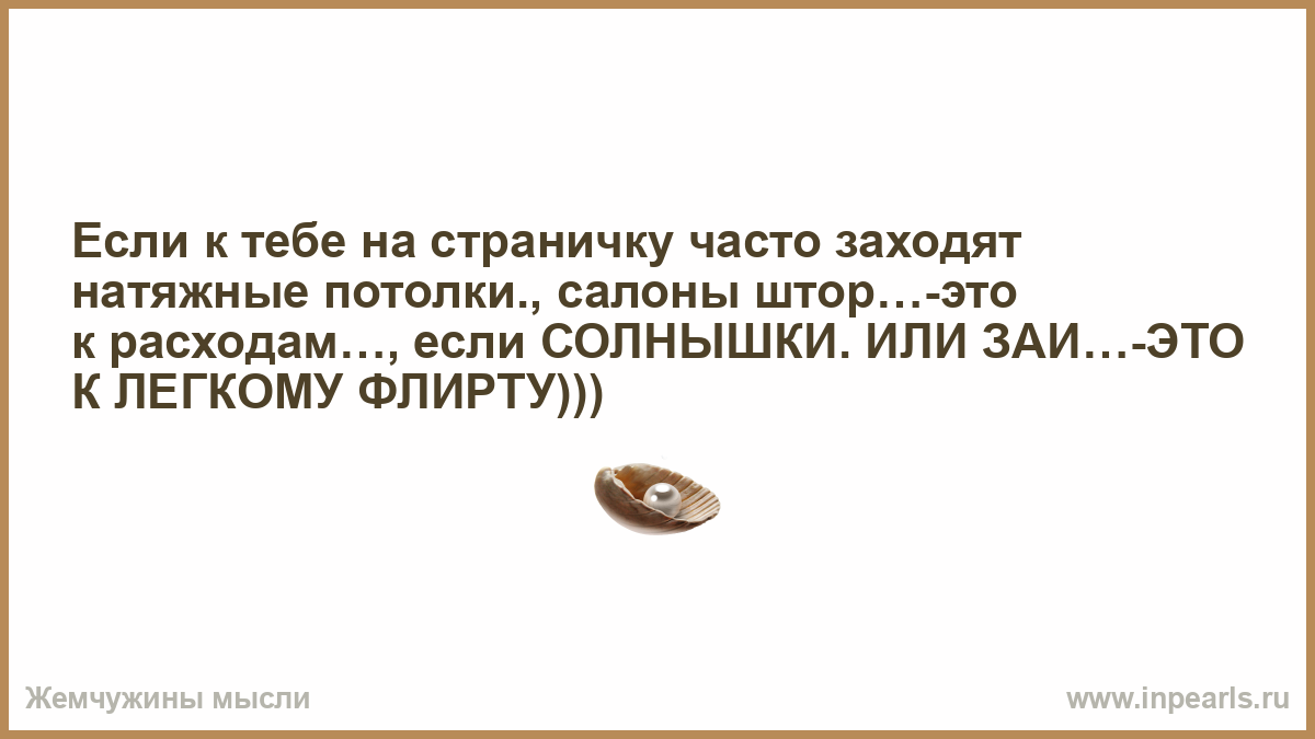 Если к тебе на страничку часто заходят натяжные потолки., салоны штор…-это к расходам…, если СОЛНЫШКИ. ИЛИ ЗАИ…-ЭТО К ЛЕГКОМУ ФЛИРТУ)))
