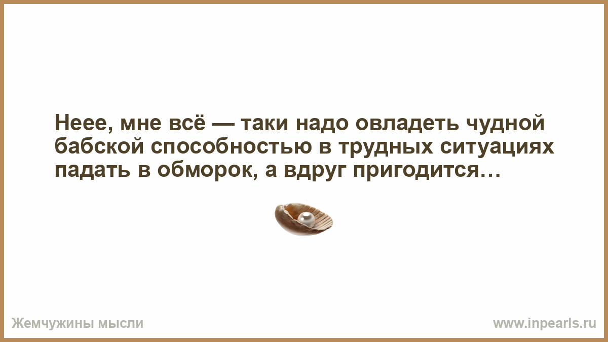 Неее, мне всё — таки надо овладеть чудной бабской способностью в трудных ситуациях падать в обморок, а вдруг пригодится…