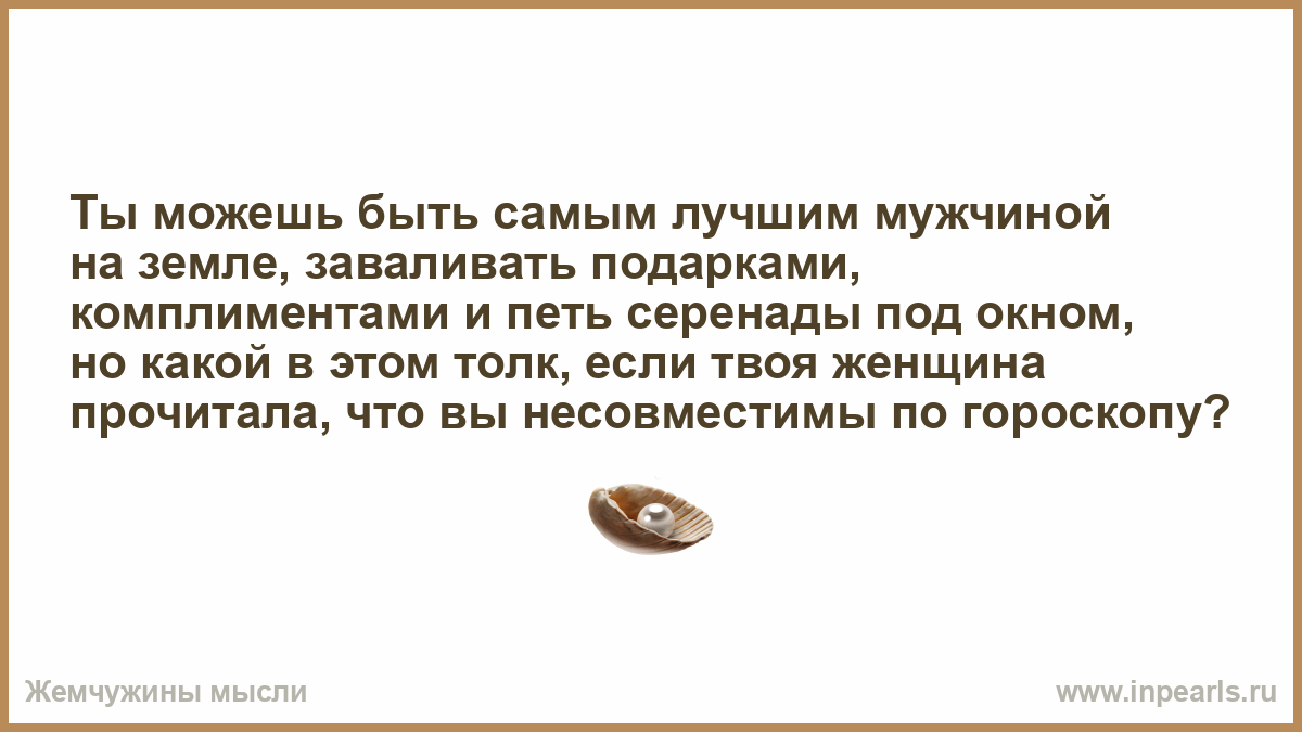 Ты можешь быть самым лучшим мужчиной на земле, заваливать подарками, комплиментами и петь серенады под окном, но какой в этом толк, если твоя женщина прочитала, что вы несовместимы по гороскопу?