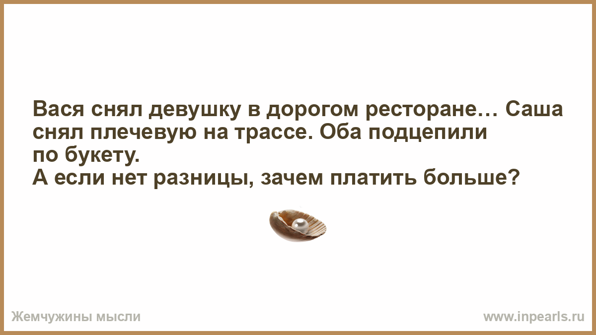 Вася снял девушку в дорогом ресторане… Саша снял плечевую на трассе. Оба подцепили по букету. А если нет разницы, зачем платить больше?