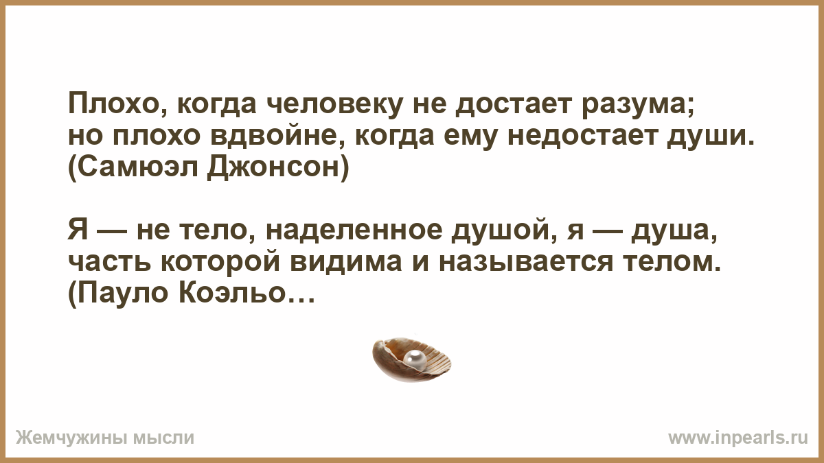Плохо, когда человеку не достает разума; но плохо вдвойне, когда ему недостает души.