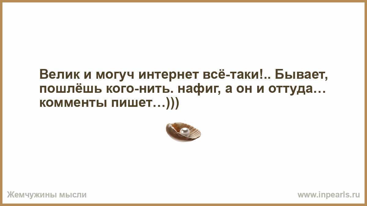 Велик и могуч интернет всё-таки!.. Бывает, пошлёшь кого-нить. нафиг, а он и оттуда… комменты пишет…)))