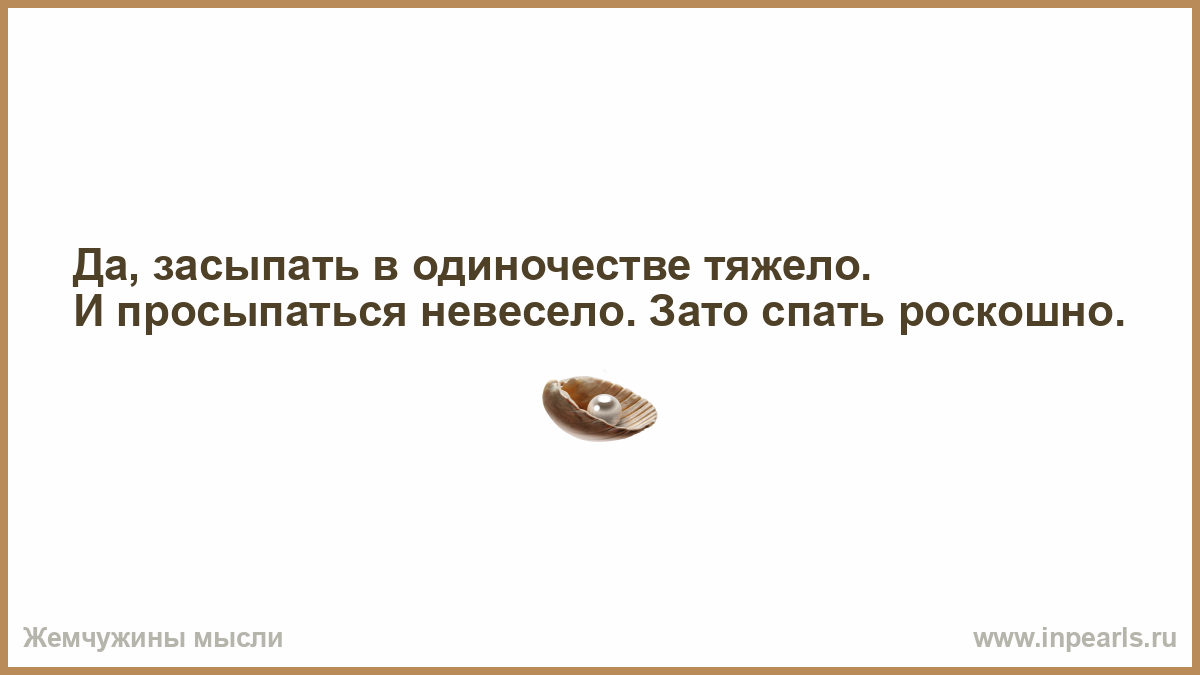 Да, засыпать в одиночестве тяжело. И просыпаться невесело. Зато спать роскошно.