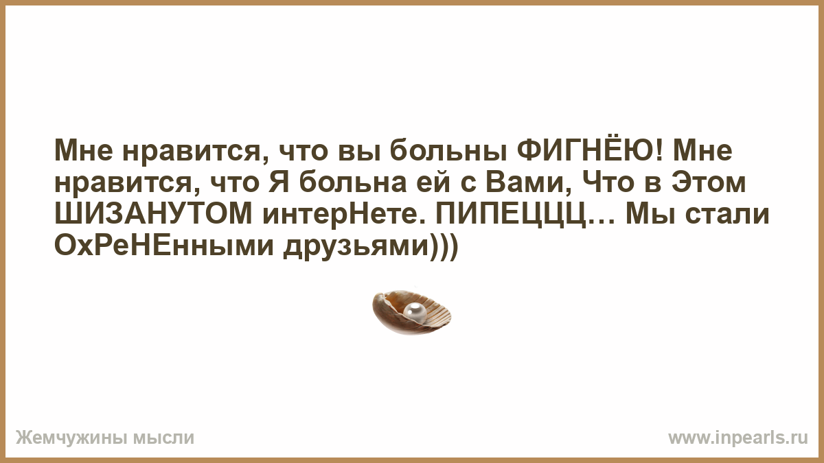 Мне нравится, что вы больны ФИГНЁЮ! Мне нравится, что Я больна ей с Вами, Что в Этом ШИЗАНУТОМ интерНете. ПИПЕЦЦЦ… Мы стали ОхРеНЕнными друзьями)))