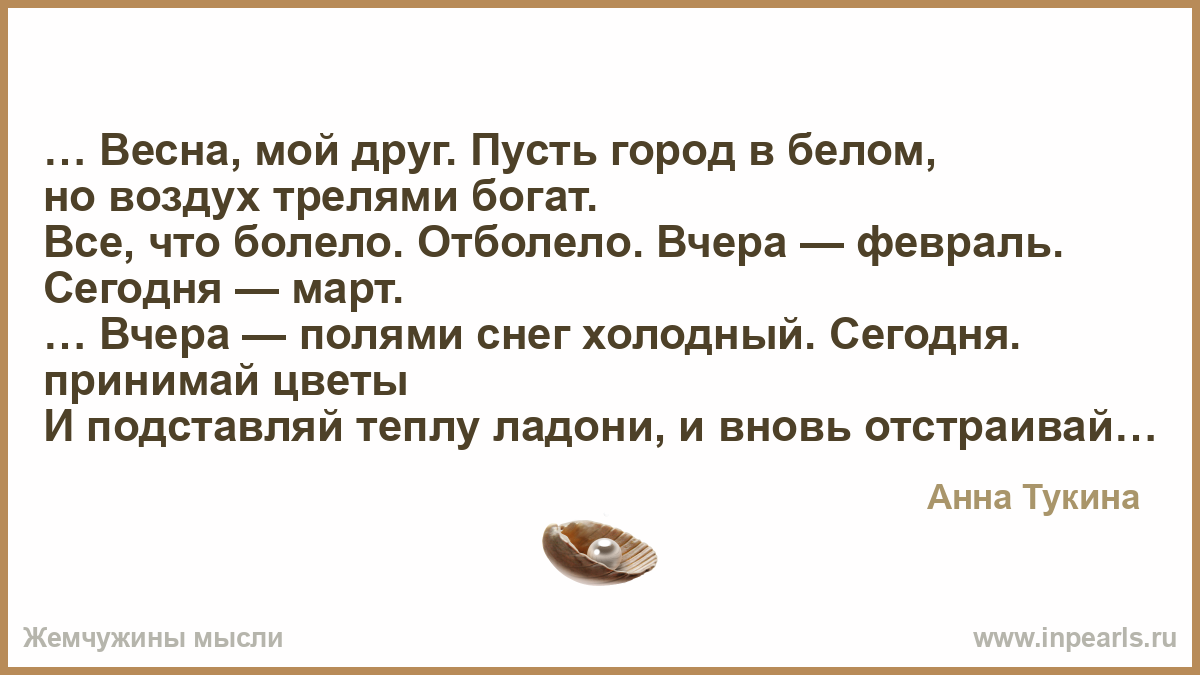 Все, что болело, нынче — опыт. Вчера — февраль. Сегодня — март.