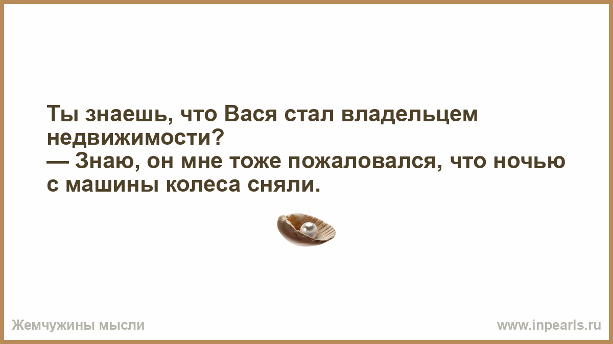 Ты знаешь, что Вася стал владельцем недвижимости?