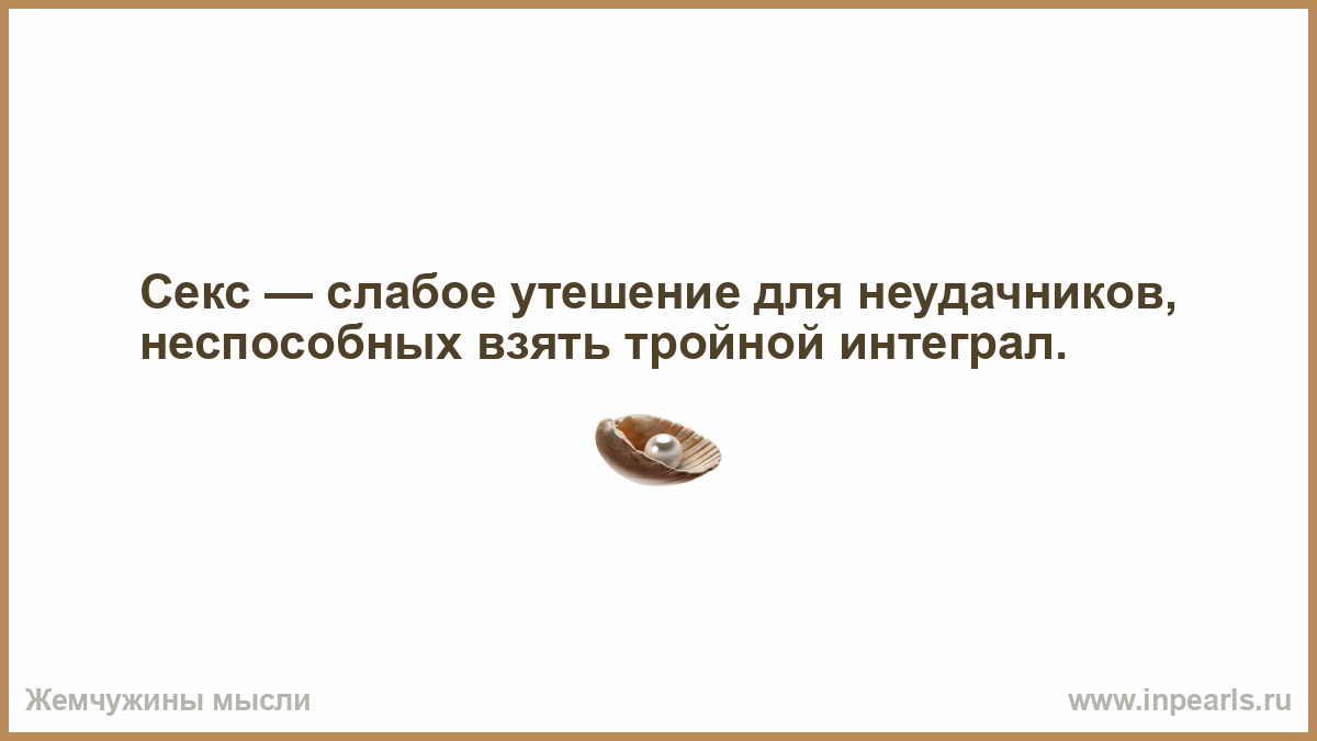 Секс — слабое утешение для неудачников, неспособных взять тройной интеграл.