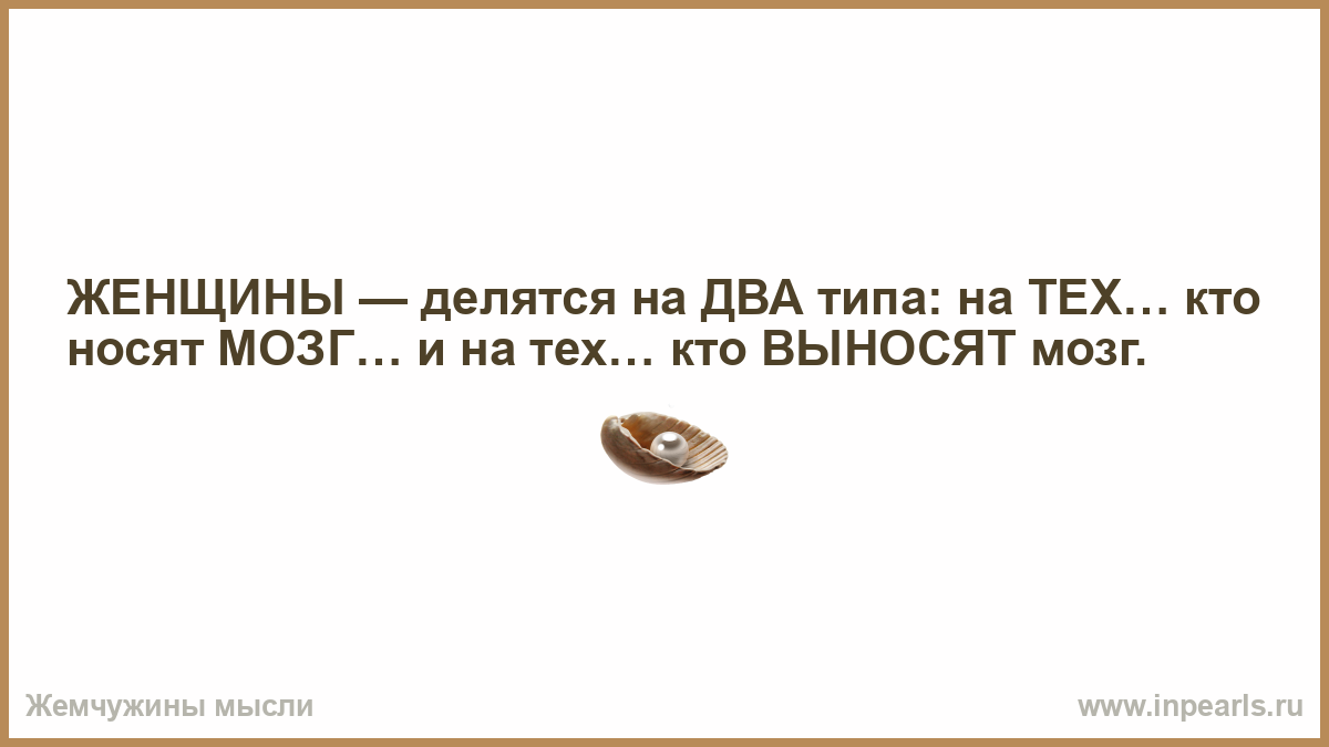 ЖЕНЩИНЫ — делятся на ДВА типа: на ТЕХ… кто носят МОЗГ… и на тех… кто ВЫНОСЯТ мозг.