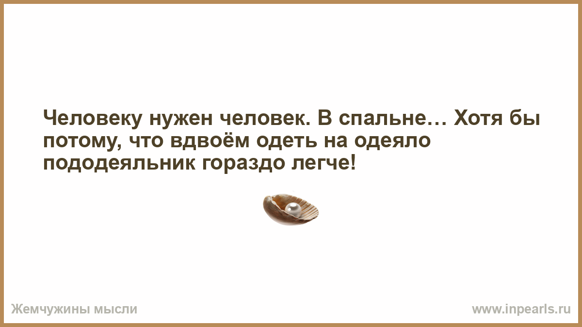 Человеку нужен человек. В спальне… Хотя бы потому, что вдвоём одеть на одеяло пододеяльник гораздо легче!
