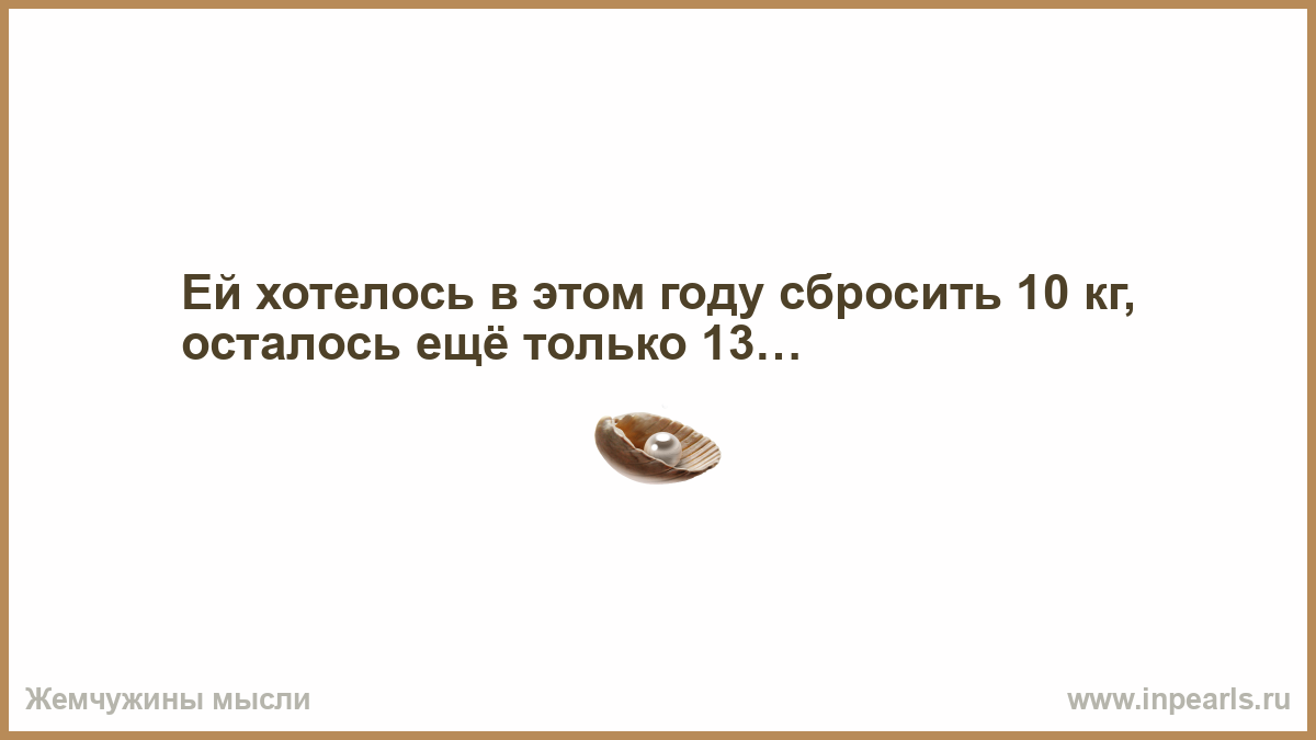 Ей хотелось в этом году сбросить 10 кг, осталось ещё только 13…