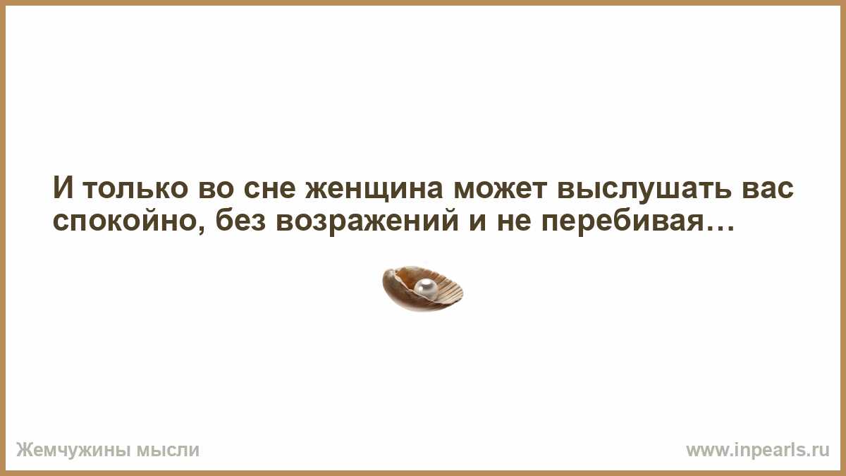 И только во сне женщина может выслушать вас спокойно, без возражений и не перебивая…