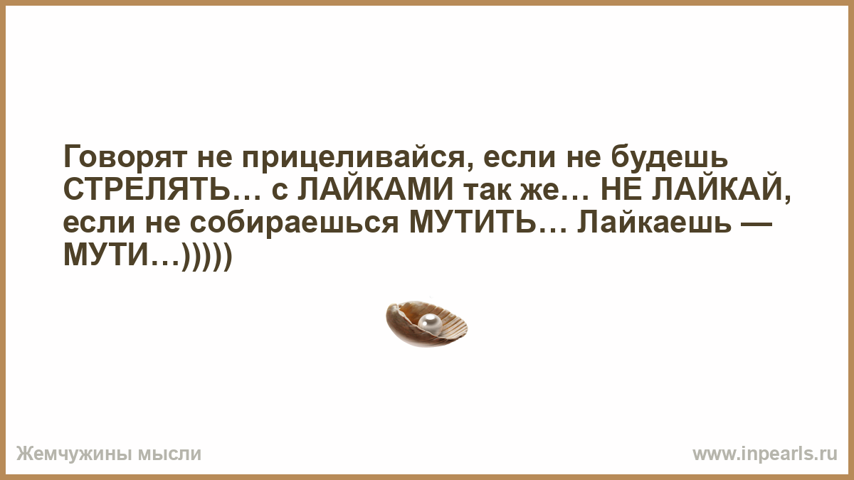 Говорят не прицеливайся, если не будешь СТРЕЛЯТЬ… с ЛАЙКАМИ так же… НЕ ЛАЙКАЙ, если не собираешься МУТИТЬ… Лайкаешь — МУТИ…)))))