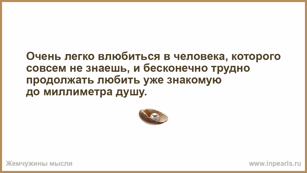 Очень легко влюбиться в человека, которого совсем не знаешь, и бесконечно трудно продолжать любить уже знакомую до миллиметра душу.
