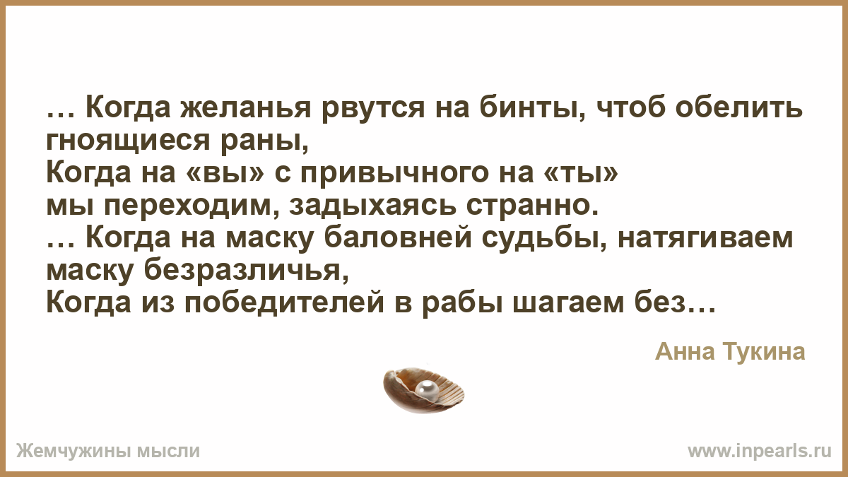 … Когда желанья рвутся на бинты, чтоб обелить гноящиеся раны,