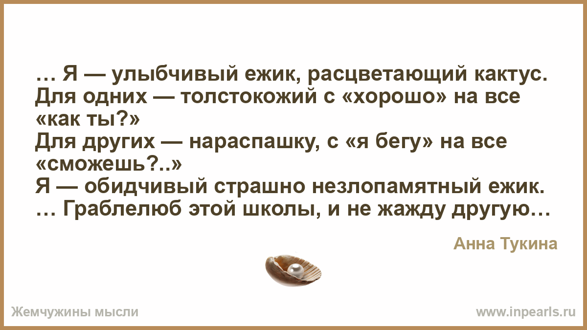 … Я — улыбчивый ежик, расцветающий кактус.